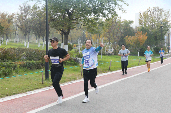 集结列阵 鸣笛开跑在鸣笛发令后,健康跑正式开跑!秋风拂面,脚步铿锵,队员们你追我赶、意气风发,成为湖畔一道流动的风景线。