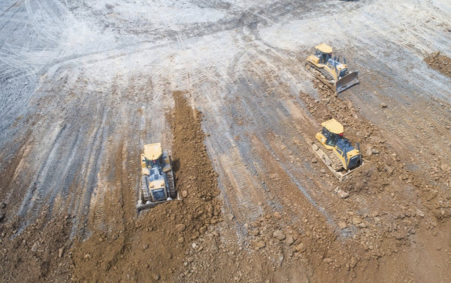 在中国江南某复合矿排土场工程施工机群高空作业,山推压路机以扭矩足、质量水平好、错误率高、系统返修率低就能获得该选矿厂看重,曾多次选用山推压路机。当前,该排土场应用两台多种类系例山推设备。