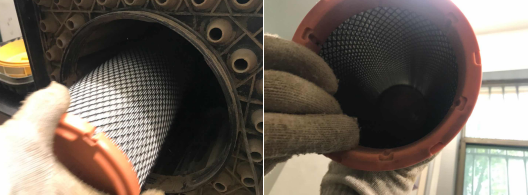 3、深度清除暖空气机油滤清器一边的排灰阀,检测其中的尘埃。用气枪深度清除活性炭滤蕊时,要沿活性炭滤蕊內侧向侧部深度清除,切不能不由开朗内吹(气枪水压在0.2MPa),请主要:活性炭滤蕊在深度清除六次后应开始调换。